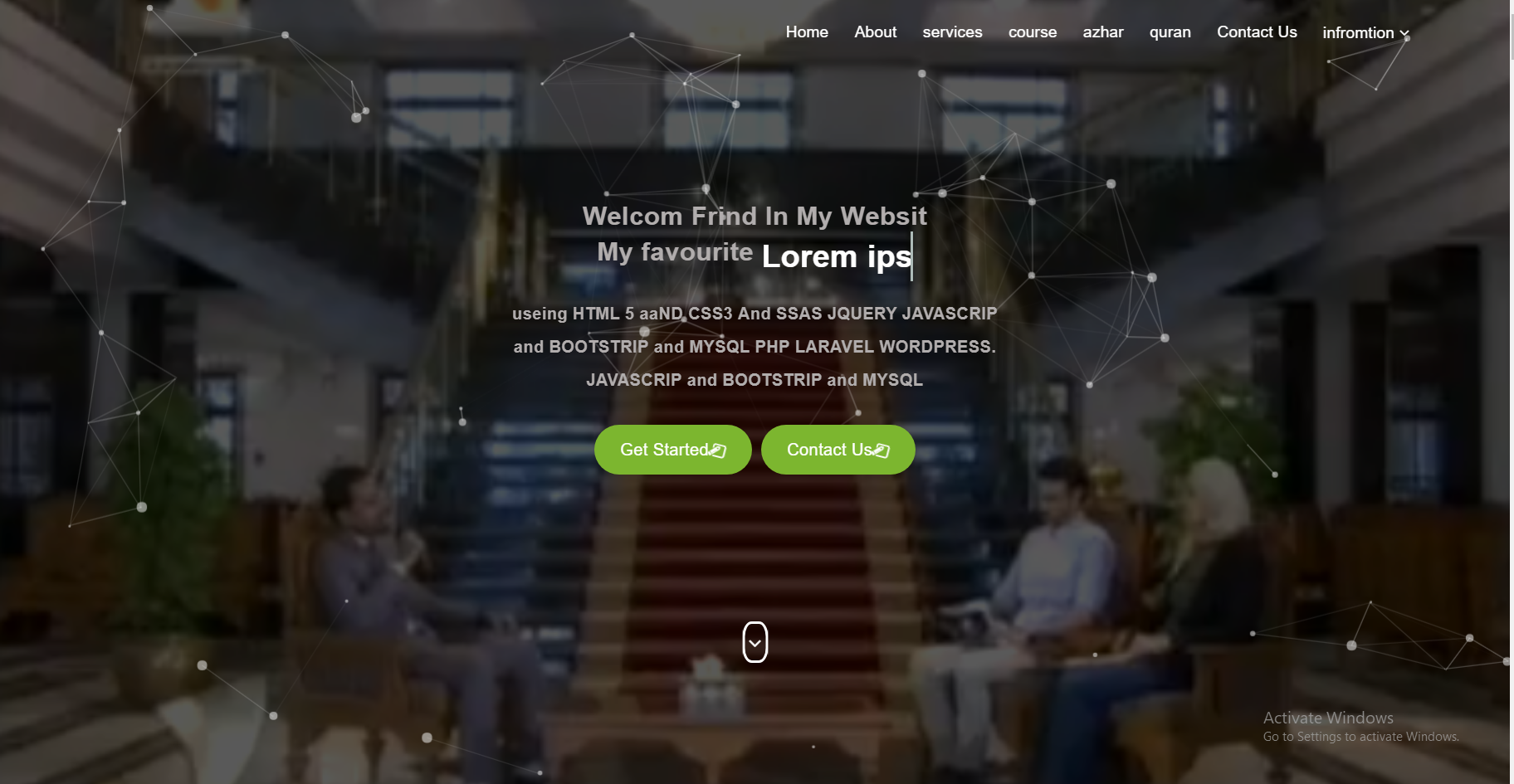 useing HTML 5 aaND CSS3 And SSAS JQUERY JAVASCRIP and BOOTSTRIP and MYSQL PHP LARAVEL WORDPRESS. JAVASCRIP and BOOTSTRIP and MYSQL